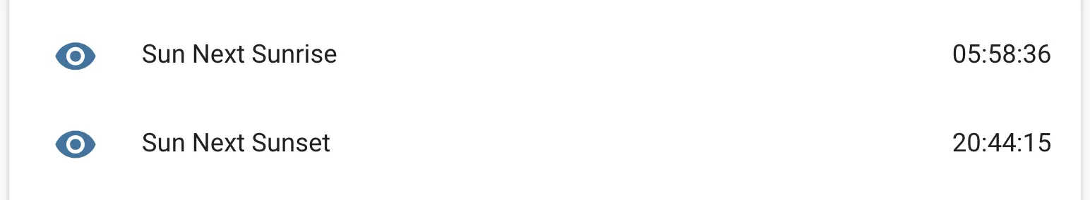 Section titled “Text Sensor”Other properties like the next sunset time can be read out with the sun text_sensor platform.
